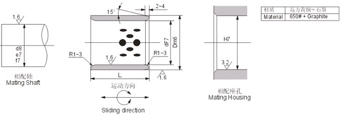 JDB-650铜基固体镶嵌式自润滑轴承,结合了铜合金(ZCuZn24Al6)的耐磨性及固体润滑剂的自润滑性能,使其在使用过程中无需 加油维护。产品被广泛用于高载、间歇性或摇摆运动,如汽机车生产流水线、水轮机、水库工作/事故门、塑胶机械等。根据使 用的工况,可以提供各种类型的铜合金。 |